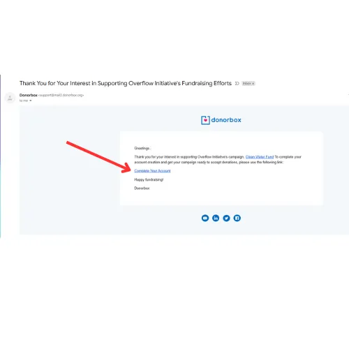 Step 4: You will receive an email from Donorbox - Click "Complete Your Account"